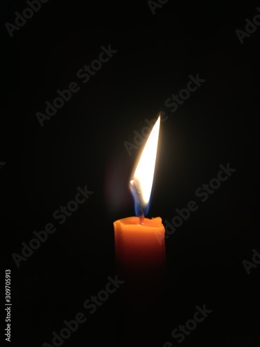 Candle flame close up on a black background