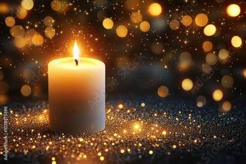 Candle Flame Surrounded by Blurred Lights