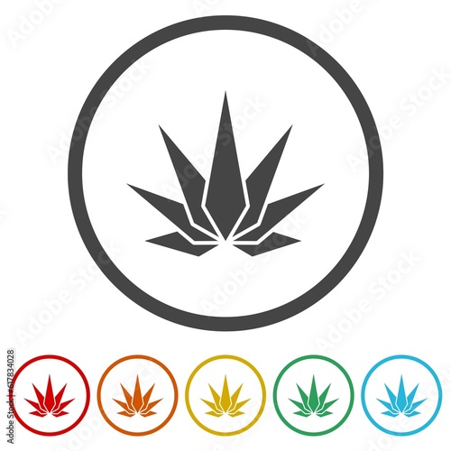 Cannabis marijuana abstract logo. Set icons in color circle buttons
