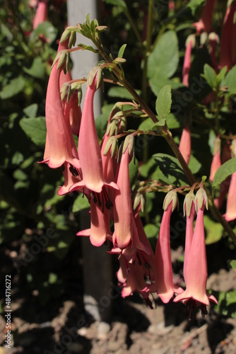 "Cape Fuchsia" flowers (or River Bell, Wild Fuchsia, Cape Figwort, Kapfuchsie) in St. Gallen, Switzerland. Its Latin name is Phygelius Aequalis, native to South Africa.