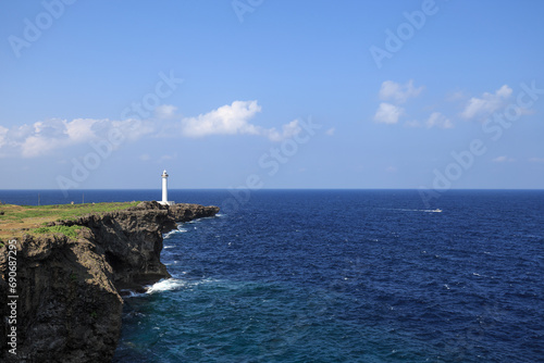 Cape Zanpa and Zampamisaki lighthouse in Okinawa Japan.