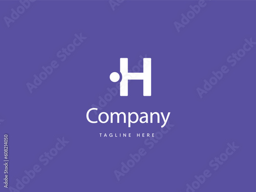 Capital H letter logo design with Purplish Blue background, H type logo with dot, creative letter H logo design template