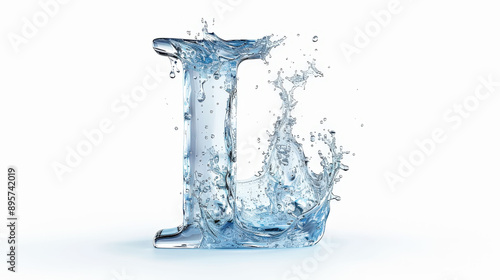 Capital letter L made of blue water splashes or ice on light background. Scrapbook activity. Generative AI