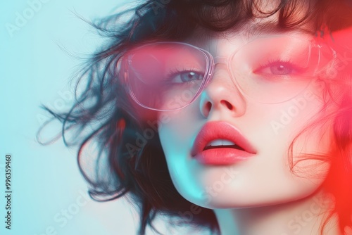Captivating Beauty: A Vibrant Portrait with Colorful Lighting and Emotive Expressions