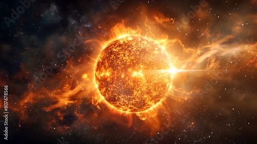 Captivating Journey of Solar Wind from Sun's Corona to Vast Cosmic Expanse in Watercolor
