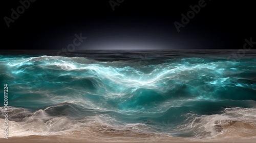 Captivating Ocean Waves at Night Dynamic Water Landscape with a Mysterious Ambiance and Fluid Motion.