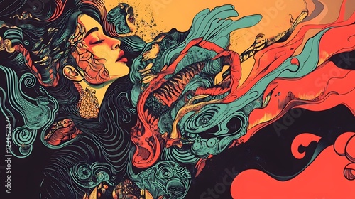 Captivating Psychedelic Dreamscape Vibrant Abstract Digital Artwork Evoking Primal Forces and Cosmic Energies