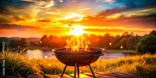 Captivating Silhouette of Barbecue Grill with Flames Dancing in Open Air, Perfect for Summer Gatherings and Outdoor Cooking Enthusiasts