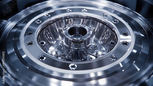 Captured from above, a polished stainless steel tank with a labyrinth of precise valve systems, reflecting a blend of industrial elegance