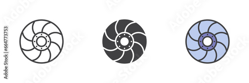 Car brake support disk different style icon set