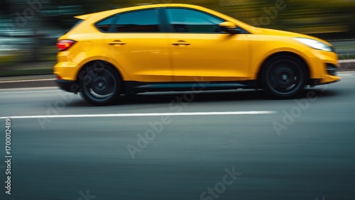 car driving in motion, yellow car on high speed