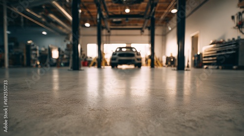 car parked inside large garage