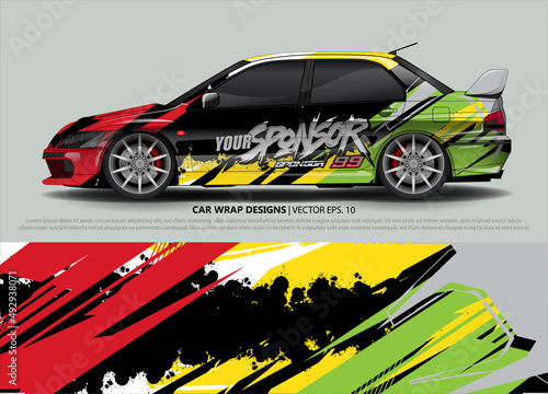 Car wrap decal design vector. abstract Graphic background kit designs for vehicle, race car, rally, livery, sport car