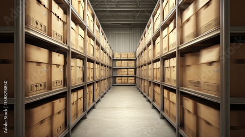 Cardboard Boxes in Motion, Industrial Space, Photography, Minimalist Environment, Ground-Level View