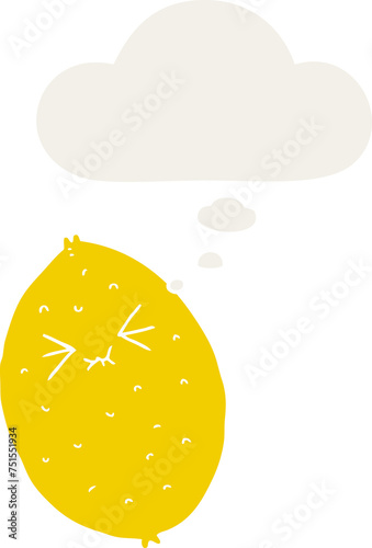 cartoon bitter lemon and thought bubble in retro style