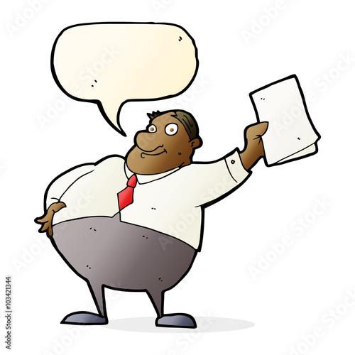 cartoon boss waving papers with speech bubble