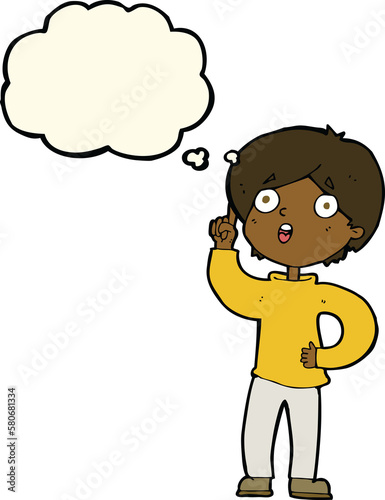 cartoon boy with idea with thought bubble