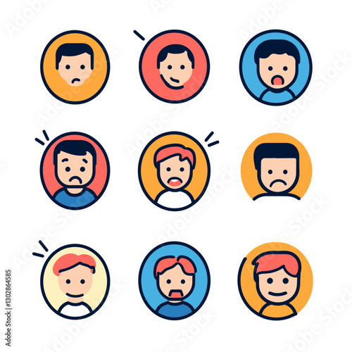 Cartoon Character Faces Displaying Various Emotions and Expressions