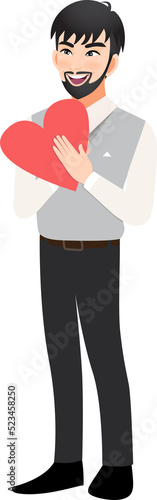 Cartoon character with man holding hearts. Valentine s Day festival. Love and volunteering