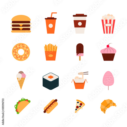 Cartoon Color Fast Food Icons Set. Vector
