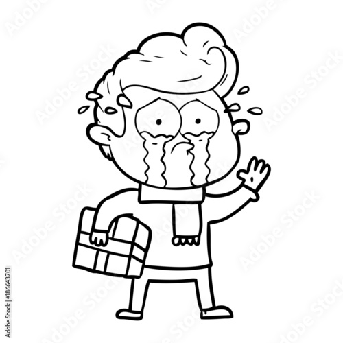cartoon crying man with present