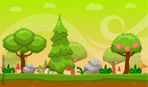 Cartoon Game background. Vector illustration. Nature. Landscape. Sunlight.