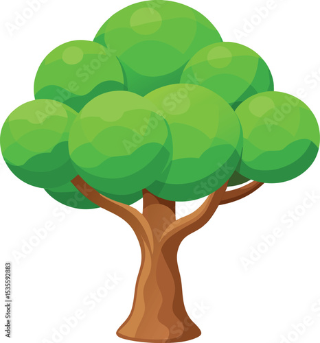 Cartoon green tree with brown trunk isolated on white