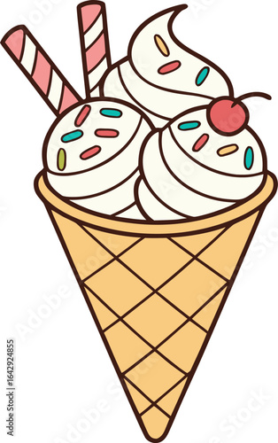 Cartoon ice cream cone with cherry on top illustration vector