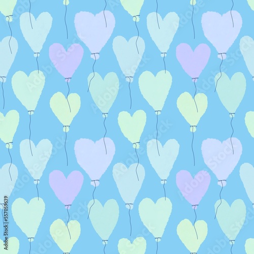 Cartoon paint valentines hearts seamless balloons pattern for birthday gift box and kids clothes print and fabrics