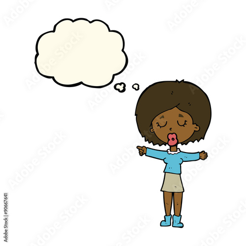 cartoon pointing woman with thought bubble