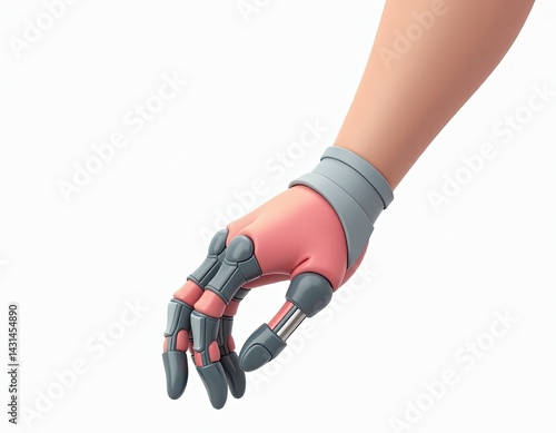 Cartoon Robotic Hand Reaching, 3D Render, Pink and Grey Cyborg Arm
