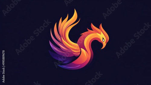 Cartoon style logo template featuring a fiery phoenix bird for branding and design purposes
