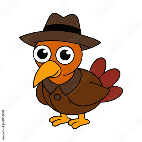 Cartoon Turkey Vulture Vector Wearing a Detective Hat
