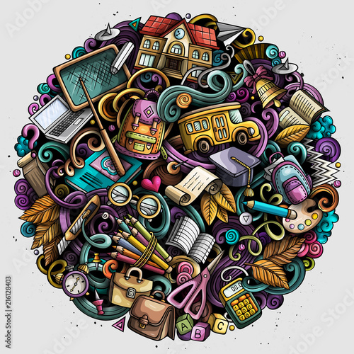 Cartoon vector doodles School round illustration