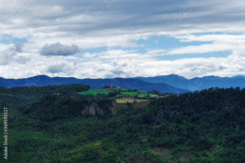 castle in the mountain landscape with clouds