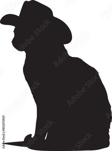 Cat Wearing a Cowboy Hat Silhouette Vector on Transparent Background