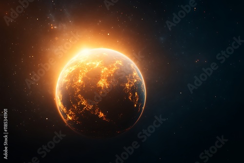 Catastrophic event ignites distant planet cosmic scene space dramatic viewpoint sci-fi concept