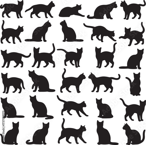 Cats Silhouettes: A comprehensive display of cat silhouettes in various poses, suitable for design needs or educational purposes.