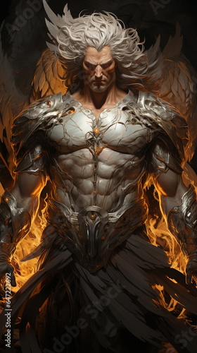 Caucasian young male, tactical suit, archangel, super hero, death angel, powerful wings, fighting full body. AI Generative