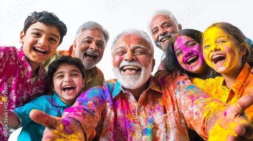 Celebrate indian holi festival with colorful powder in vibrant family gathering