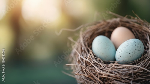 Celebrate spring with colorful easter eggs in a nest on a sunny day
