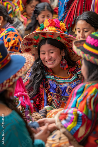 Celebrating Cultural Diversity: A Joyful Interaction in a Vibrant Multicultural Marketplace