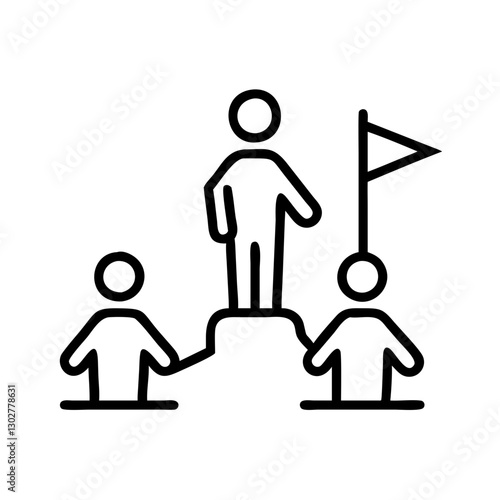 Celebration of teamwork and achievement illustrated through a simple vector icon demonstrating a person standing on a pedestal with two others below