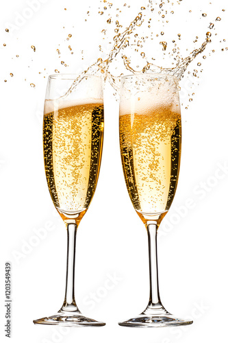 celebration toast with champagne isolated on white