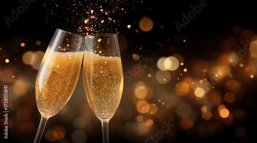 Celebration with Sparkling Champagne Flutes Against a Glittering Background for Festive Events