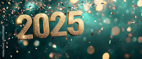 Celebratory display of glittering 2025 numerals with shimmering confetti in a festive atmosphere