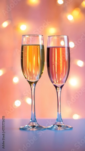 Celebratory toast with champagne flutes and bokeh lights for special occasions and events