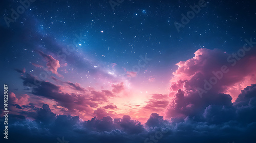 Celestial dreamscape pink clouds under starry night sky majestic cloudscape dramatic skies and cosmic glow