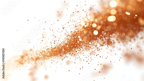 CG Render of Floating Particles: A swirl of tiny, glowing CG particles suspended in mid-air, contrasted against a pure white background.
