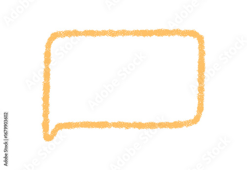 Chalk speech balloon in orange with rectangle outline and hand drawn organic style. Chat and conversation message, comment outline with graphic element for text or dialog.